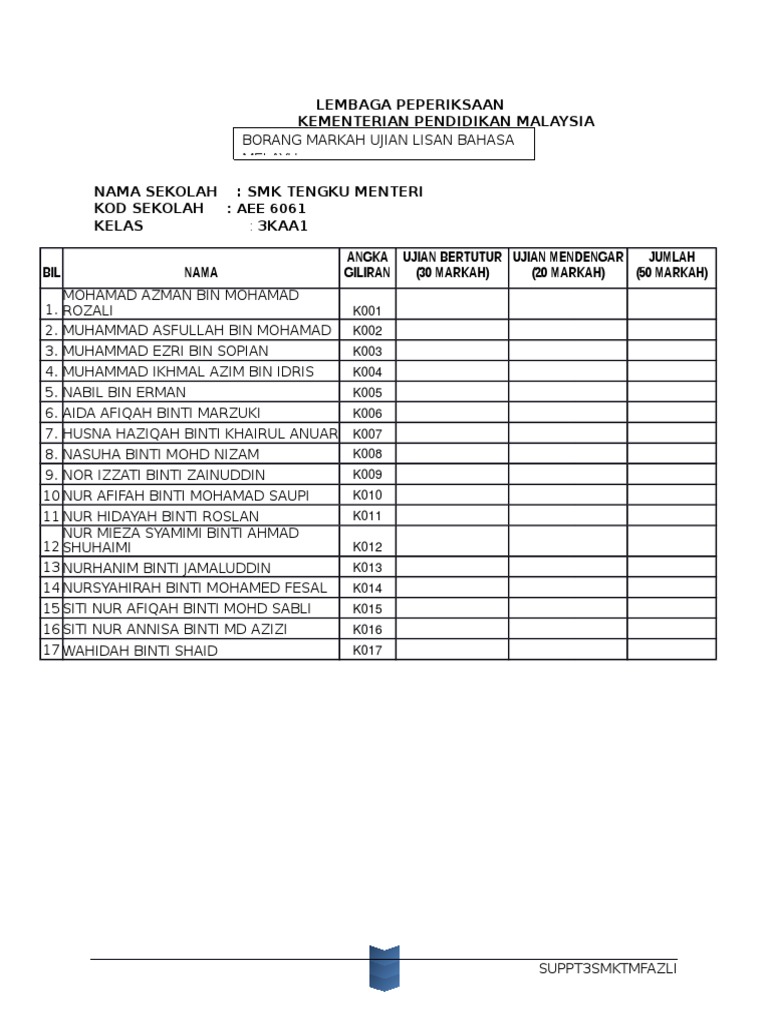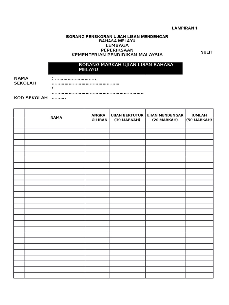 Borang Markah Ujian Lisan Bm Pt3 Pdf
